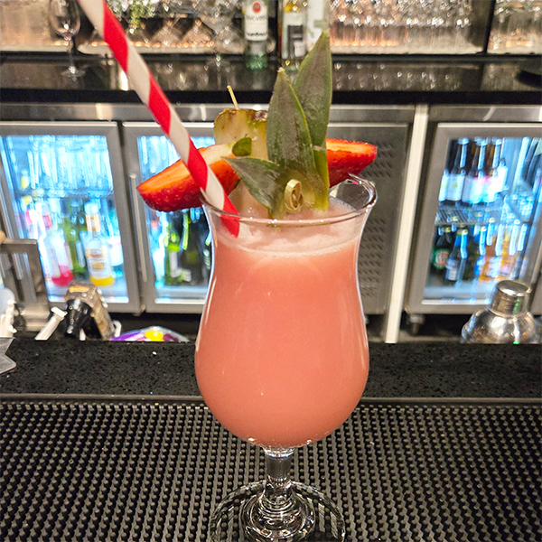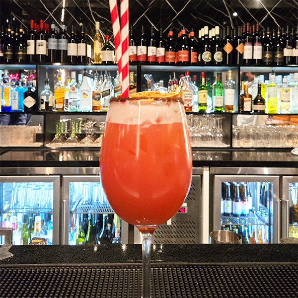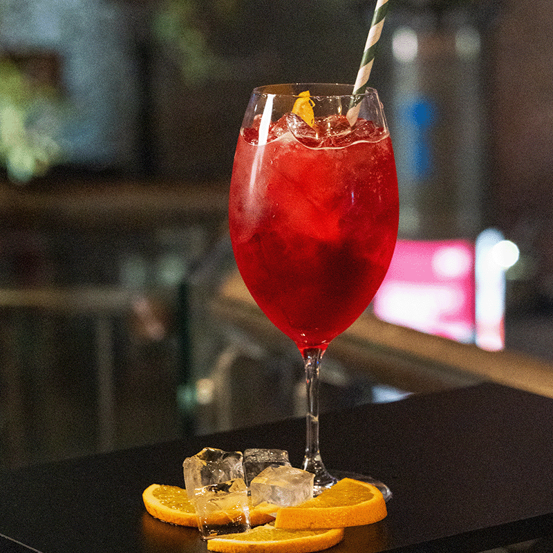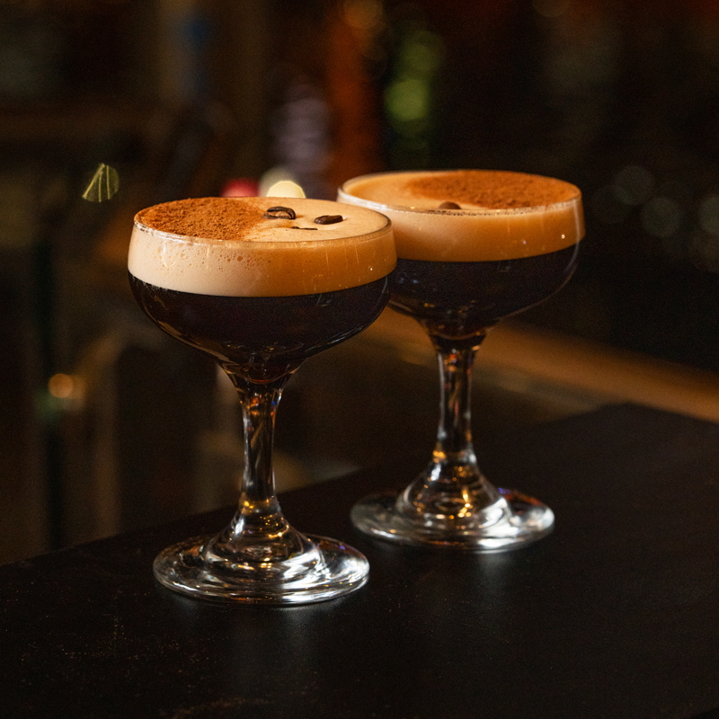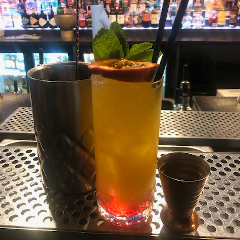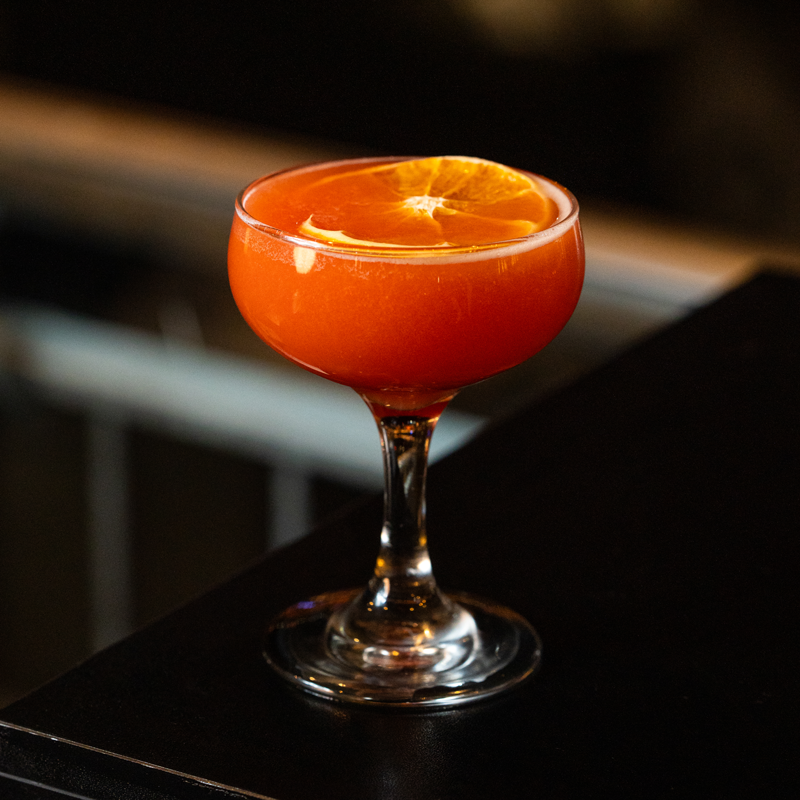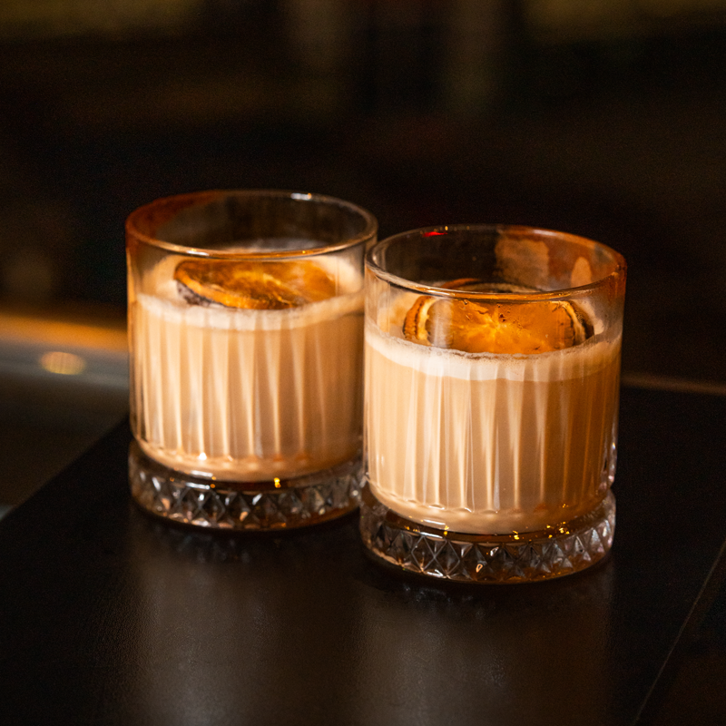 - Cinnamon and cocoa rimmed glass and dehydrated orange or passionfruit float