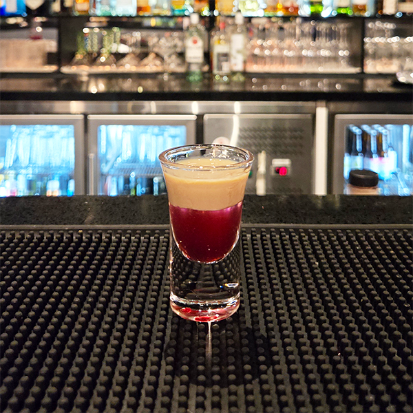 - Flame the Cointreau into glass, put out the flame with a large ice cube